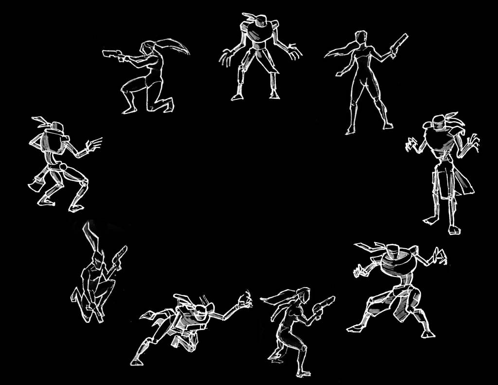 Once you’ve solved a character pose, silhouette, or composition at a miniature scale, you can carry that spontaneity into larger drawings, preserving the clarity and energy of the original.