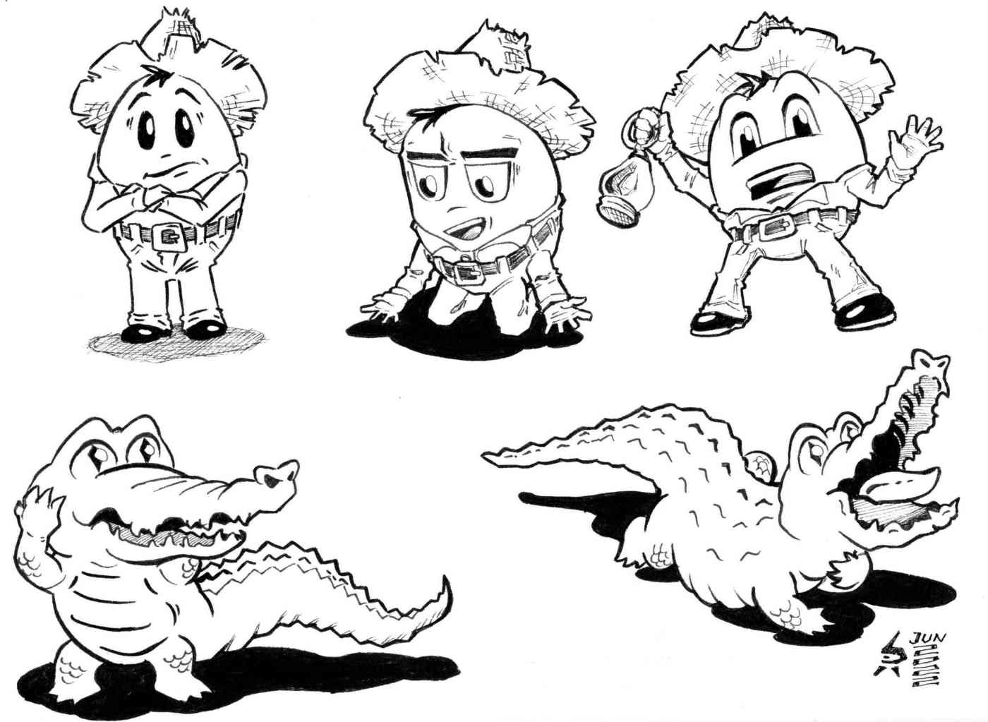 Aquรญ algunos cuantos sketches de los personajes de mi personaje de la infancia “El Campesinito”. Estoy tratando de darles mรกs vida.