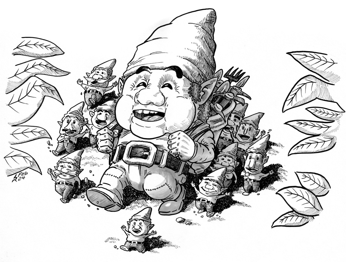 A remake of a drawing I made in 2020 for the Inktober of that year (check at the bottom of this post). The original prompt word was “BULKY,” and looking at it again, I couldn’t help but remake it. This version captures more of what I originally intended to do, with the dirt surface and plant leaves surrounding them. I love making new versions of my old pieces.