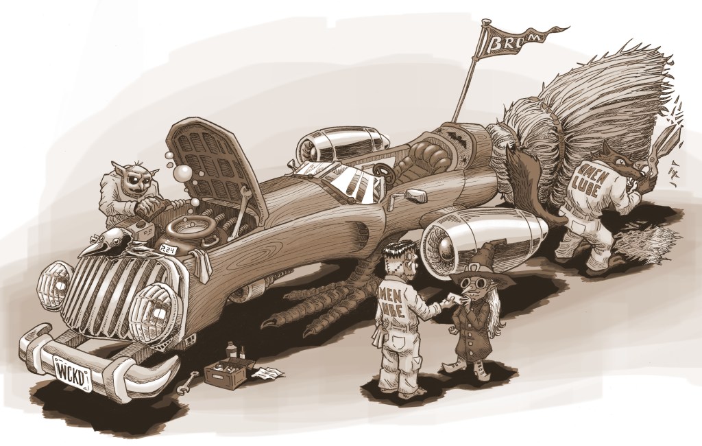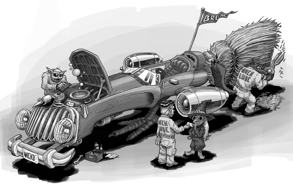 OK, here’s the final colored version of the broom speeder concept art. I hope you like it. Check below some monochrome versions, sepia, and grayscale.