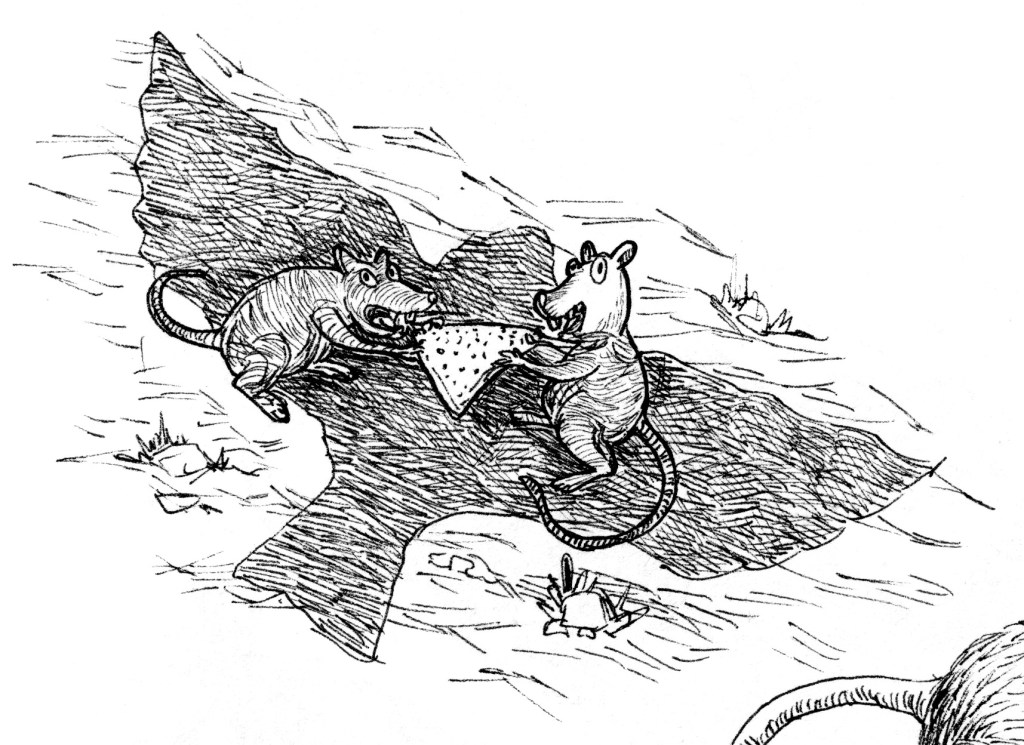This is the first exploration sketch, as it can be seen, the mice did not have any personality, and they were fighting over a nacho.