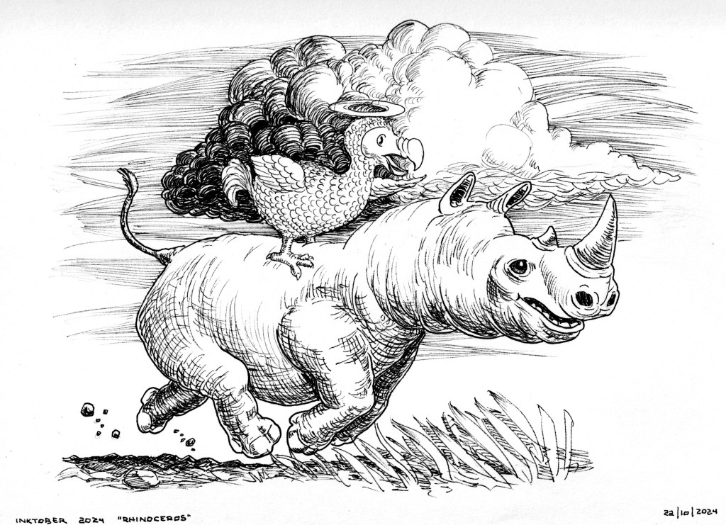 I really like this one, particularly because I was going to do a Rhino playing a trompet, but immediatelly I knew I couldn’t draw this animal while ignoring it is an endangered species; I felt my illustration needed to say somthing about it.
