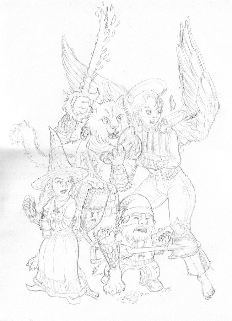 As foreshadowed, with the poses of the characters already setup, I was able to work on their design and a bit of what they were doing.