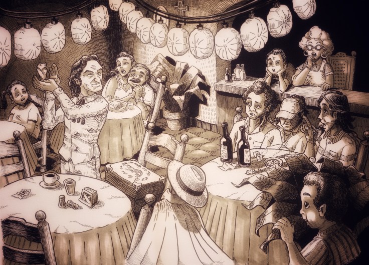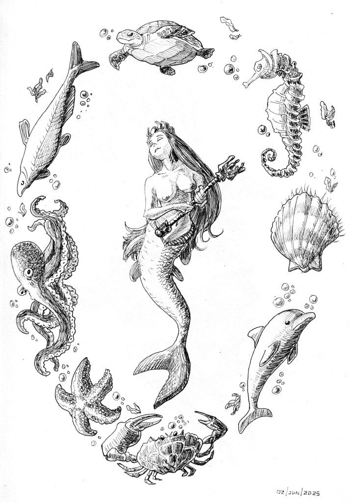 The mysterious Mermaid with sea creatures dancing around engraved on Don Angelo’s mysterious vault of wonders is finally here. It is amazing to think this illustration was born back then in 2021, when I wrote my first short story “The Tiny Paper Man”.