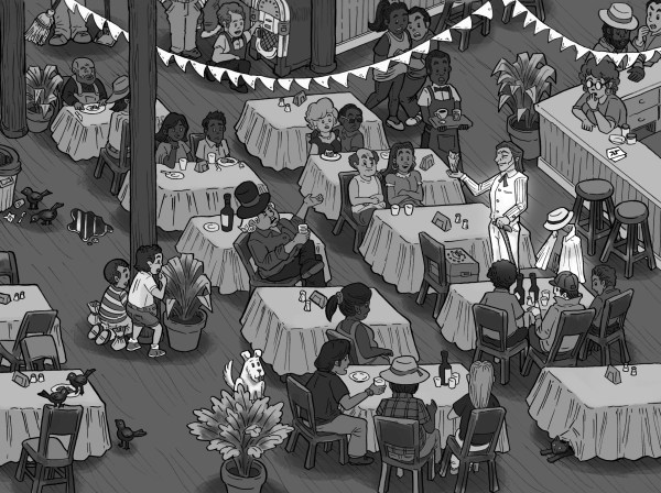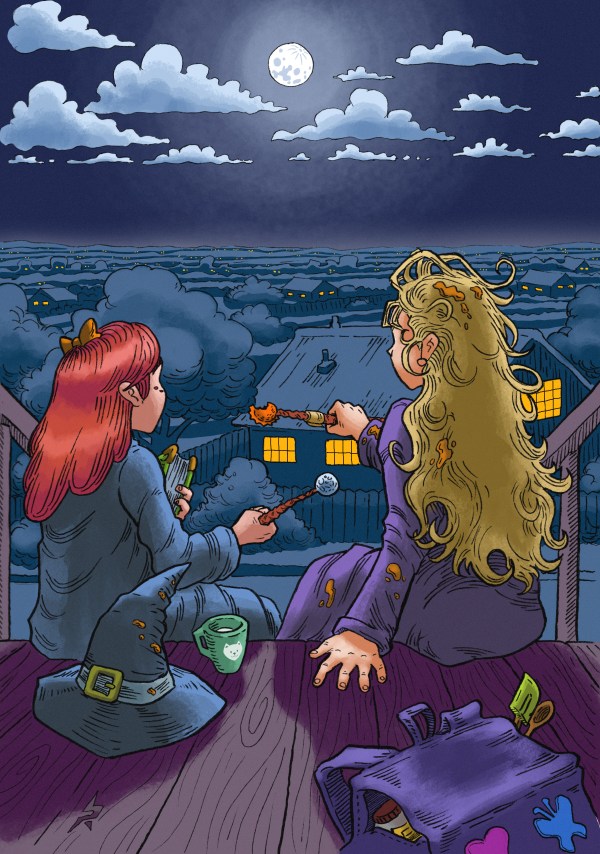 This is an illustration I’d been running away from for a long time. I usually don’t draw sceneries and landscapes, but I have to admit I really enjoyed this one. Here, Aurelio briefly reveals to Stella where that thing escaped in my short story “The Ishume Day”.
