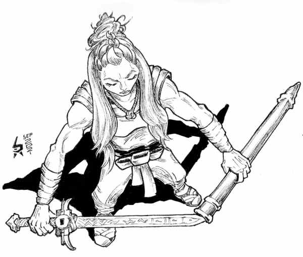 The same swordswoman (need to think about a name), unsheathing an antique sword.